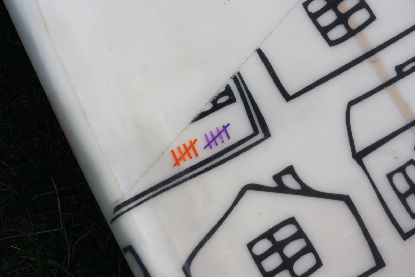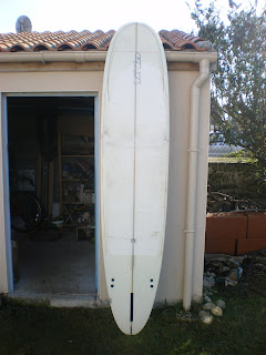 En pleine période de tentative de vente de quelques planches, le même jour où Wayo Whilar a commencé à shaper ma nouvelle planche, voilà que mon longboard a fait crshhtttt.... sans doute en faisant une tortue sous une grosse mousse.