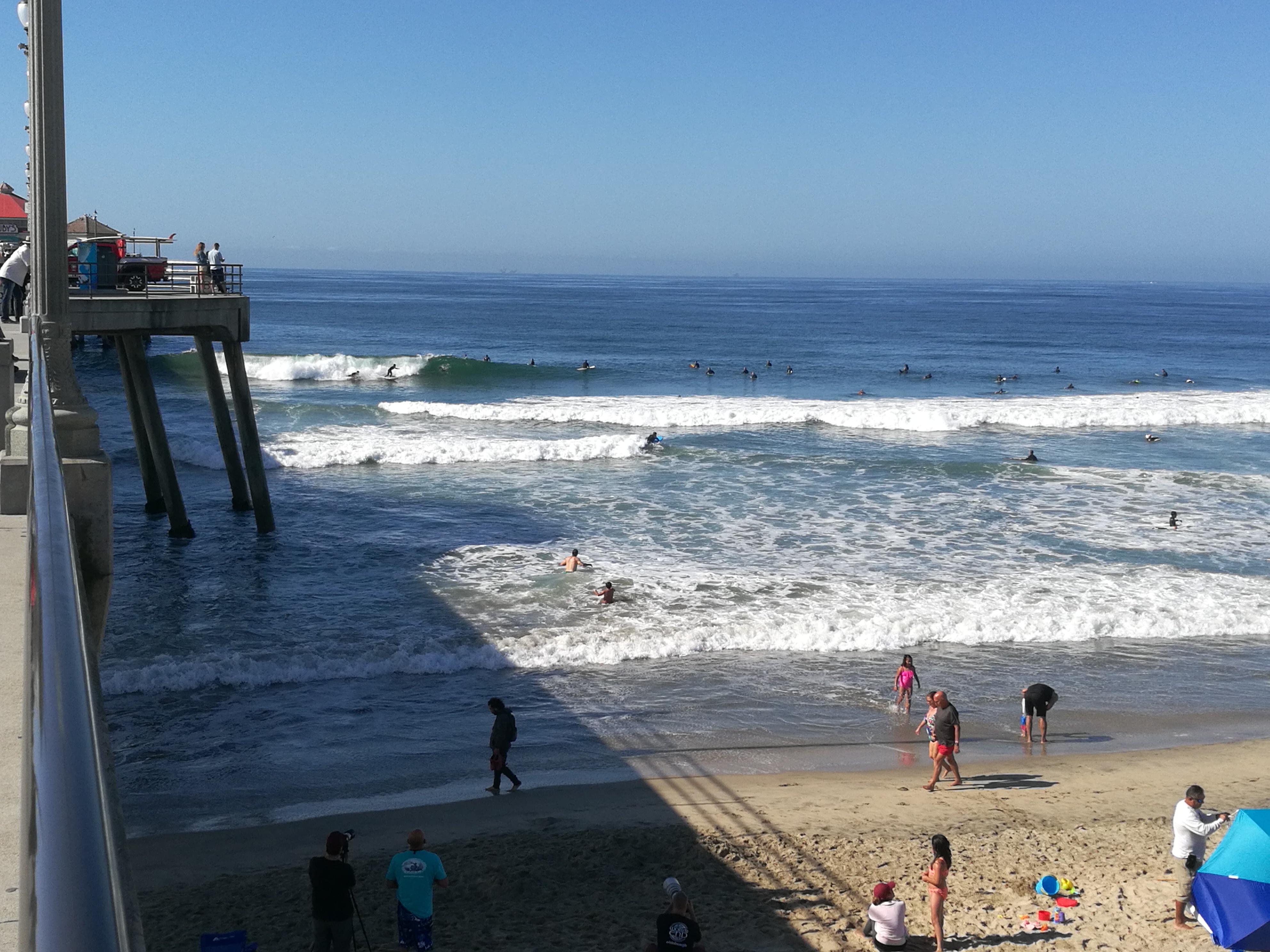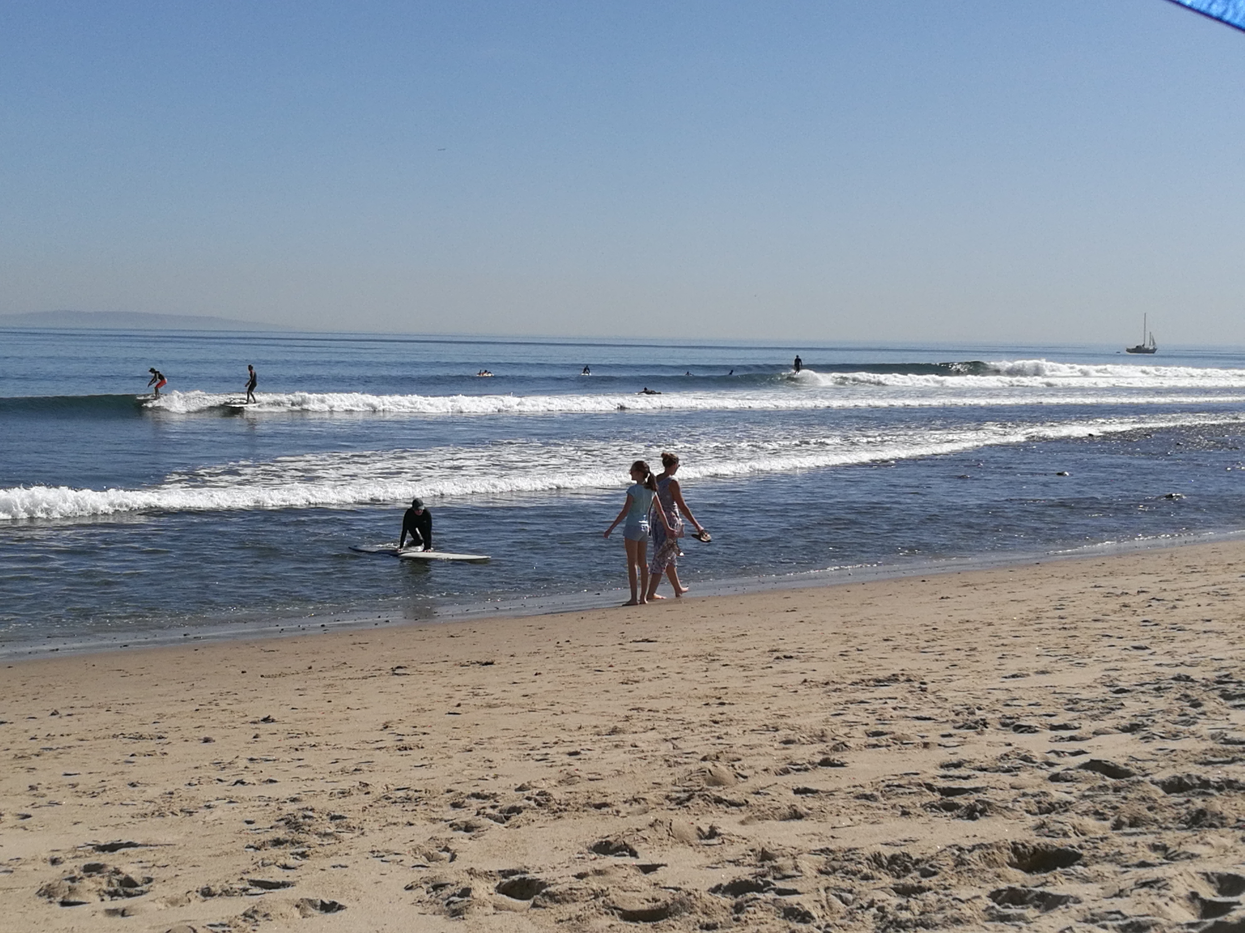 Le lendemain se pose la question d'où passer l'avant dernier jour . En bon renard , je sais qu'il n'y a qu'une option pour surfer avec cette petite houle , que ça plaira à Mme et que c'est la dernière session possible car même si le lendemain l'avion est à 20h , pas possible de surfer car il faut remballer le bbag et que les combis soient séches . Je négocie donc un retour à Huntington car l'endroit est cool , concentre la houle , et permet à ma chérie d'aller se boire un café ou faire les boutiques pendant qu'on surfe . Car oui, ce n'est pas mme Occy , faire des photos de son idole ( moi) , ben elle s'en tamponne la coquillette donc pas de photos d'action .