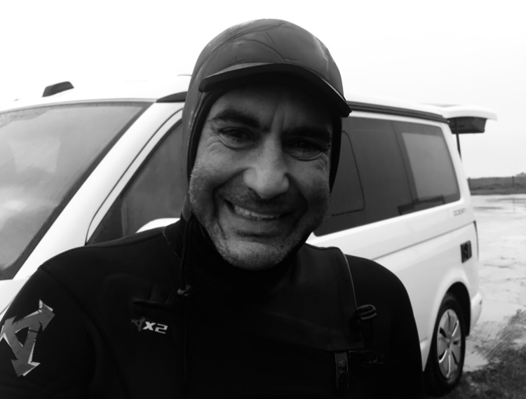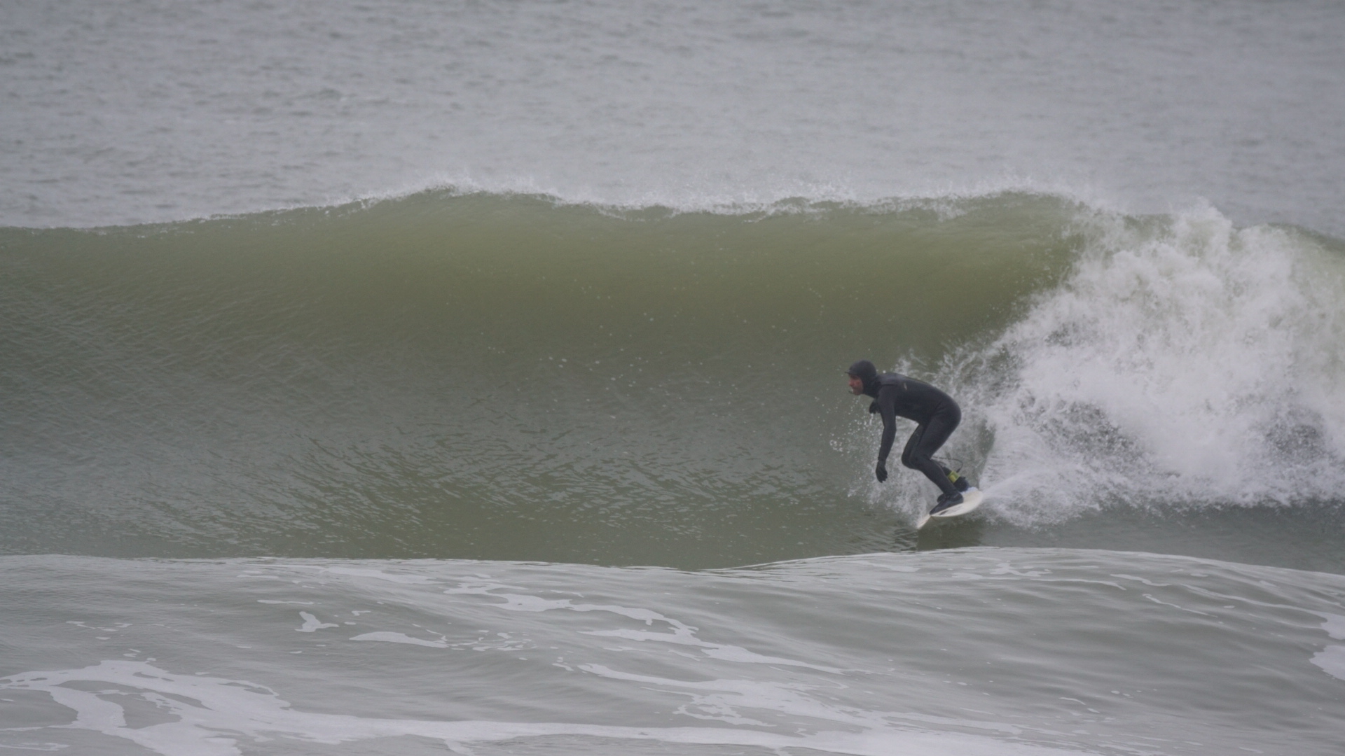 Au lieu d’avoir l’eau turquoise, elle est marron, au lieu d’avoir 23 degrés, on a un froid polaire et de la grisaille. Au lieu de la 3/2, on a des armures de 5mm gants chaussons et cagoules