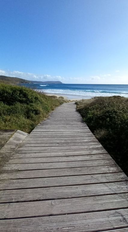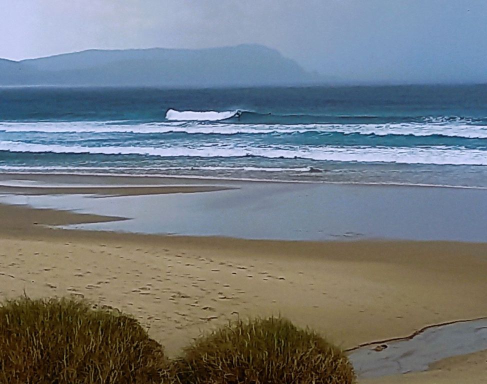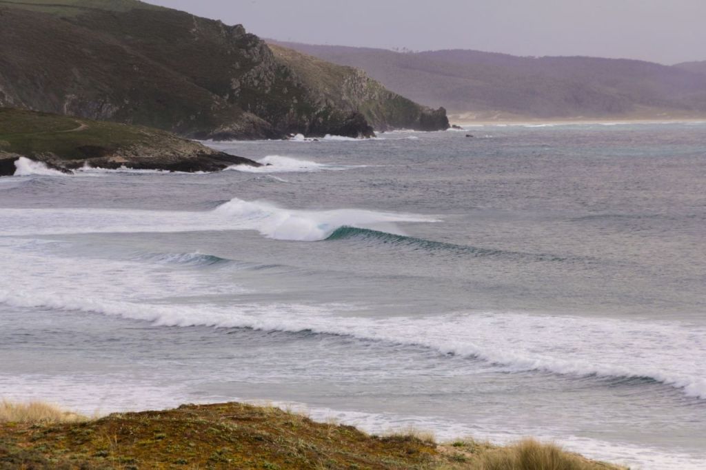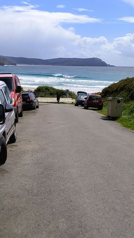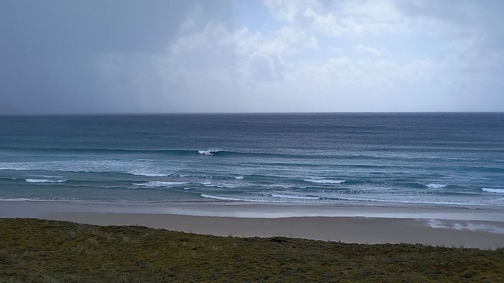 Il pleut des trombes toute la nuit ! Le mardi matin, c'est terminé, mais les vagues sont ventées, je reprends la route vers mon objectif au bout du monde. 16h, j’arrive sur le parking. Pas grand monde, mais ça s’agite gentillement, ça s’échauffe, ça wax les boards. Gros soulagement après 1000 bornes dans le doute. Ça surfe !