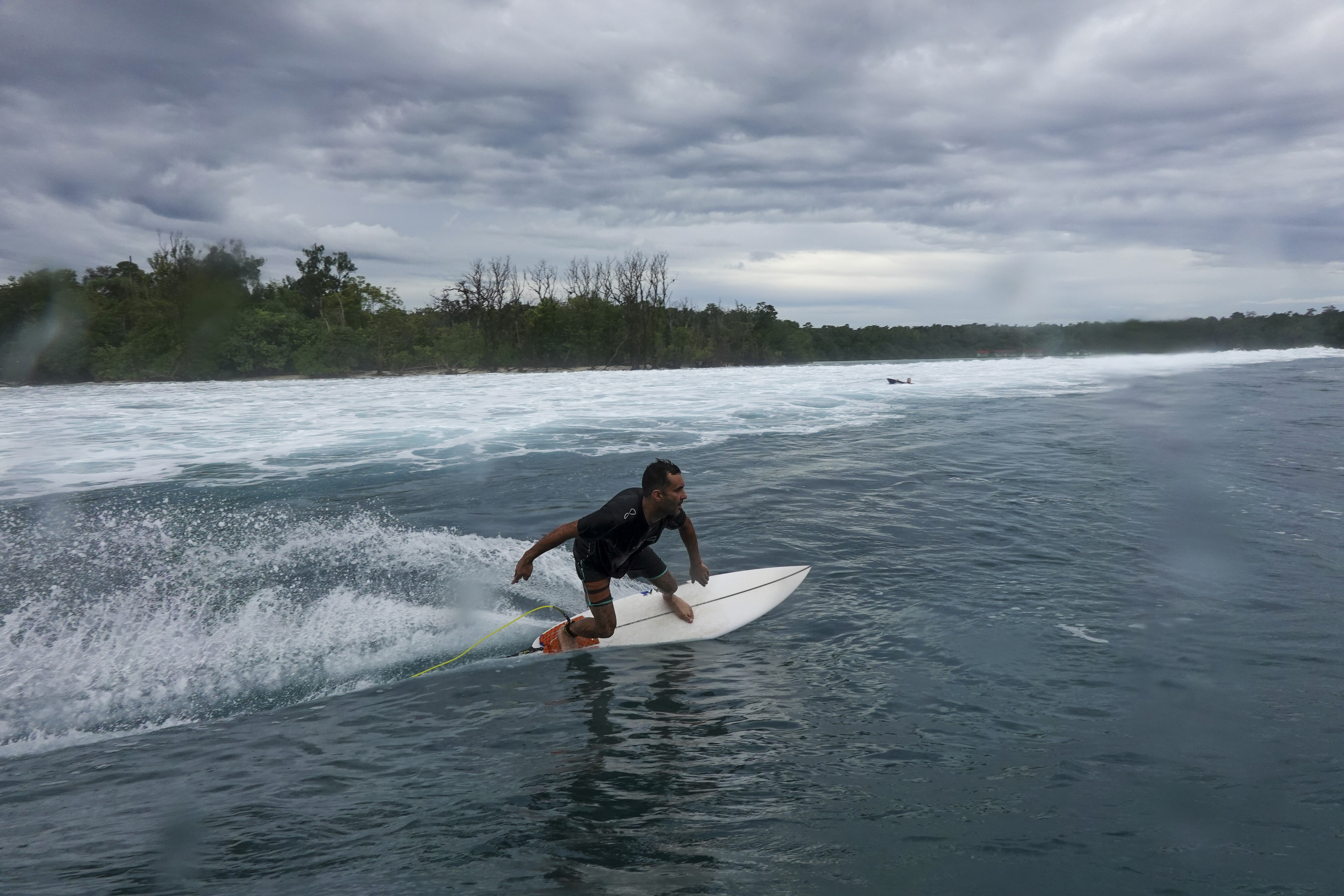 On a surfé la droite de Gunturs sur la 2ème section et la gauche de Dindo au fond de la baie.