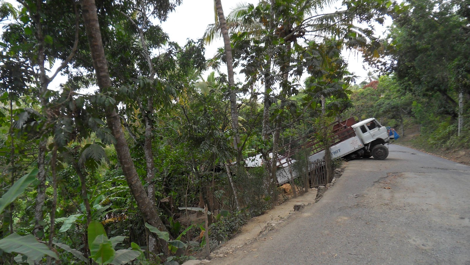Vient alors la partie difficile, la plaine fait place à la montagne et la route se fait piste. Un camion dans le ravin ou des morceaux de voiture ça et là témoignent de la dangerosité de la route.