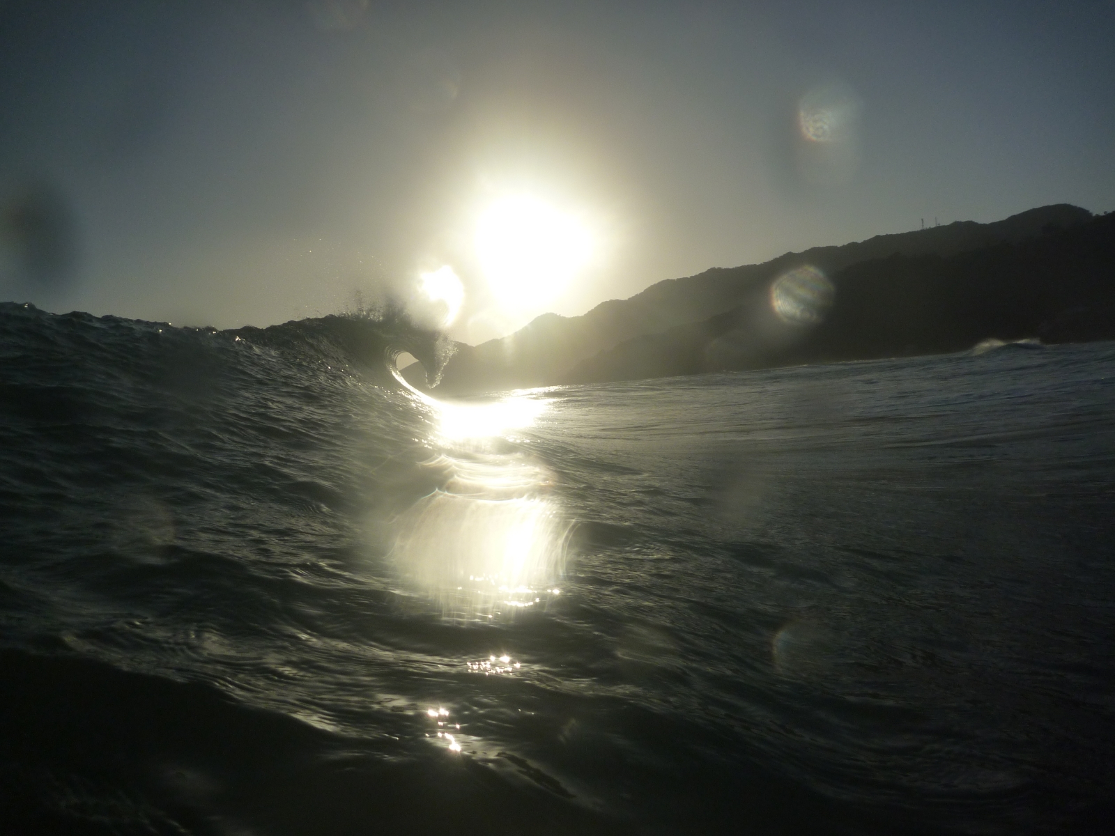 Nous observons Ginsu pour la première fois. La droite déroule malgré le vent d'Est et il y un mètre à un mètre cinquante. Trop tard pour ce soir, on s'y collera demain. C'est le spot principal de la côte Nord et un des plus accessibles. Le nom de ce spot a été donné en référence à une célèbre marque de couteaux américains.